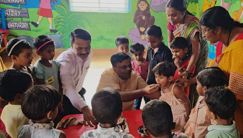 ವಿಜಯಪುರ: ಮಕ್ಕಳೇ ನಿಜವಾದ ದೇವರು. ಅವರೊಂದಿಗೆ ಕಳೆಯುವ ಸಮಯವೇ ಸುಸಮಯ, ಮಕ್ಕಳನ್ನು ಭೇಟಿ ಮಾಡುವುದು ಅವರೊಂದಿಗೆ ಸಂವಾದ ನಡೆಸುವುದು ನನಗೆ ಅತ್ಯಂತ ಇಷ್ಟವಾದ ಕೆಲಸ. ಹಾಗಾಗಿ ನನ್ನ ನೂತನ ವರ್ಷಾರಂಭವನ್ನು ಅಂಗನವಾಡಿಯ ಮುದ್ದು ಮಕ್ಕಳಿಗೆ ಸಿಹಿ ವಿತರಿಸುವುದರೊಂದಿಗೆ ಹಾಗೂ ಅವರೊಂದಿಗೆ ಸಂವಾದ ನಡೆಸುವುದರ ಮೂಲಕ ಪ್ರಾರಂಭಿಸಿರುವುದಾಗಿ ಕರ್ನಾಟಕ ಬಾಲವಿಕಾಸ ಅಕಾಡೆಮಿ ಅಧ್ಯಕ್ಷ ಸಂಗಮೇಶ ಬಬಲೇಶ್ವರ ಹೇಳಿದರು.