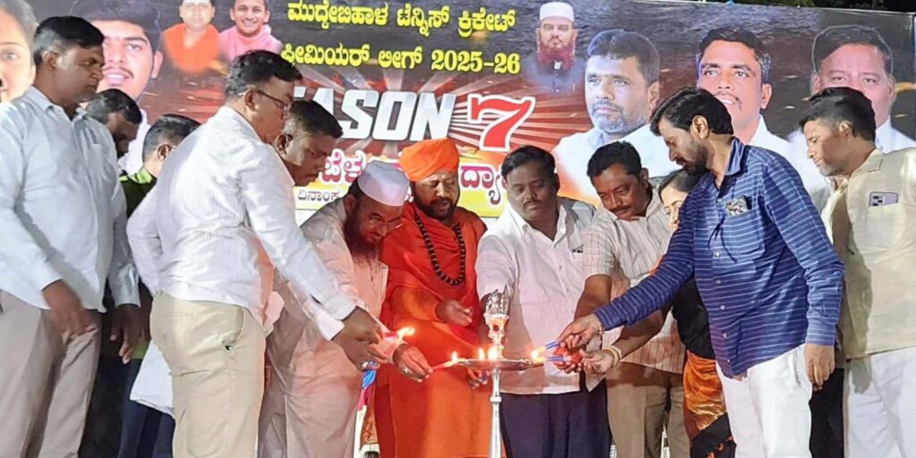 ಪಟ್ಟಣದ ವಿಬಿಸಿ ಹೈಸ್ಕೂಲ್ ಮೈದಾನದಲಲಿ ಆಯೋಜಿಸಲಾದ ಎಂಪಿಎಲ್ ಕ್ರಿಕೆಟ್ ಟೂರ್ನಾಮೆಂಟ್ ಸೀಸನ್-೭ ನ ಉದ್ಘಾಟನಾ ಸಮಾರಂಭದ ದಿವ್ಯ ಸಾನಿಧ್ಯವಹಿಸಿ ಅವರು ಆಶೀರ್ವಚನ ನೀಡಿದರು.