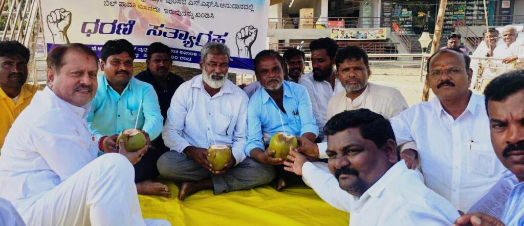 ಮುದ್ದೇಬಿಹಾಳ: ಪಟ್ಟಣದ ಅಂಬೇಡ್ಕರ್ ವೃತ್ತದ ಕಾಮಗಾರಿಯ ಬಿಲ್ ಪಾವತಿ ಮಾಡುವಂತೆ ಒತ್ತಾಯಿಸಿ ವಿವಿಧ ದಲಿತಪರ ಸಂಘಟನೆಗಳ ವತಿಯಿಂದ ವೃತ್ತದಲ್ಲಿ ಧರಣಿ ಸತ್ಯಾಗ್ರಹವನ್ನು ಆರಂಭಿಸಿದ್ದರು.