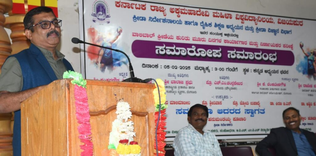 ನಗರದ ಕರ್ನಾಟಕ ರಾಜ್ಯ ಅಕ್ಕಮಹಾದೇವಿ ಮಹಿಳಾ ವಿಶ್ವವಿದ್ಯಾನಿಲಯದ ದೈಹಿಕ ಶಿಕ್ಷಣ ಅಧ್ಯಯನ ಮತ್ತು ಕ್ರೀಡಾ ವಿಜ್ಞಾನ ವಿಭಾಗ ಮತ್ತು ದೈಹಿಕ ನಿರ್ದೇಶನಾಲಯ ಇವರ ಸಂಯುಕ್ತ ಆಶ್ರಯದಲ್ಲಿ ಗುರುವಾರ ಆಯೋಜಿಸಿದ್ದ ವಾಲಿಬಾಲ್ ಕ್ರೀಡೆಯ ಕುರಿತು ಮೂರು ದಿನಗಳ ಕಾರ್ಯಾಗಾರ ಮತ್ತು ನಿರ್ಣಾಯಕರ ಪರೀಕ್ಷೆ ಸಮಾರೋಪ ಸಮಾರಂಭದಲ್ಲಿ ಅವರು ಮಾತನಾಡಿದರು.