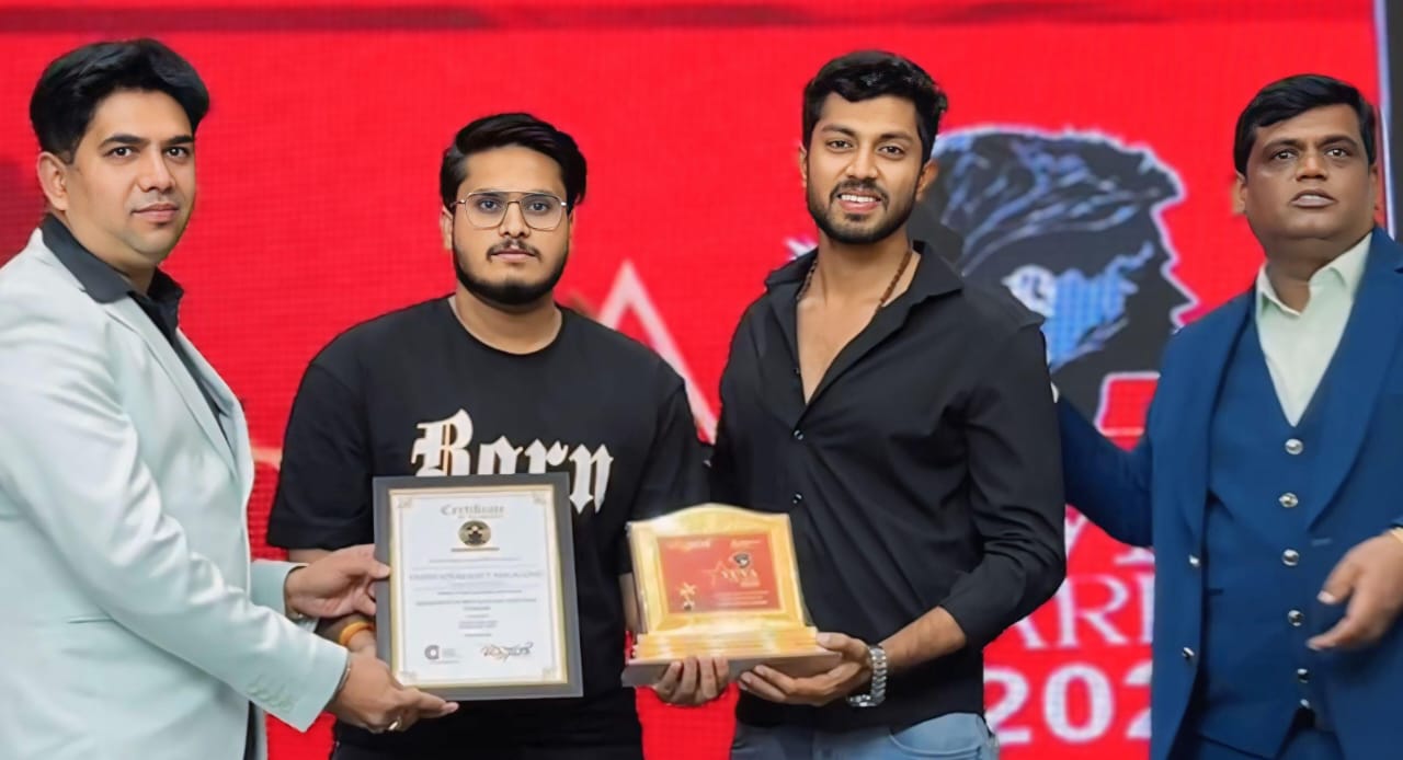 ಗುರುವಾರ ಬೆಂಗಳೂರಿನ ಹೈದೆಹಿ ಪಾರ್ಕ್ ಹೊಟೆಲ್ ನಲ್ಲಿ ಜರುಗಿದ ಚಲನಚಿತ್ರೋತ್ಸವದಲ್ಲಿ ವಿಶ್ವಪ್ರಕಾಶ ಟಿ ಮಲಗೊಂಡ ಅವರಿಗೆ ಪಡ್ಡೆಹುಲಿ ಸಿನಿಮಾ ಖ್ಯಾತಿಯ ನಟ ಶ್ರೇಯಸ್ ಕೆ ಮಂಜು ಹಾಗೂ ಚಿತ್ರ ಸಂತೆ ಸಂಪಾದಕ ಗಿರೀಶ ವಿ ಗೌಡ ಅವರು ಪ್ರಶಸ್ತಿ ಪ್ರದಾನ ಮಾಡಿದರು.