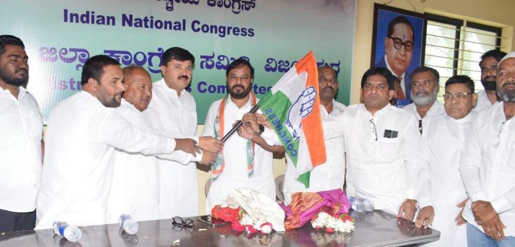 ಜಿಲ್ಲಾ ಕಾಂಗ್ರೆಸ್ ಕಾರ್ಯಲಯದಲ್ಲಿ ನಡೆದ ಸಮಾರಂಭದಲ್ಲಿ ಜಿಲ್ಲಾ ಕಾಂಗ್ರೆಸ್ ಅಧ್ಯಕ್ಷರಾದ ಮಲ್ಲಿಕಾರ್ಜುನ ಎಸ್. ಲೋಣಿ ರವರು ಕಾಂಗ್ರೆಸ್ ಧ್ವಜ ನೀಡಿದರು.