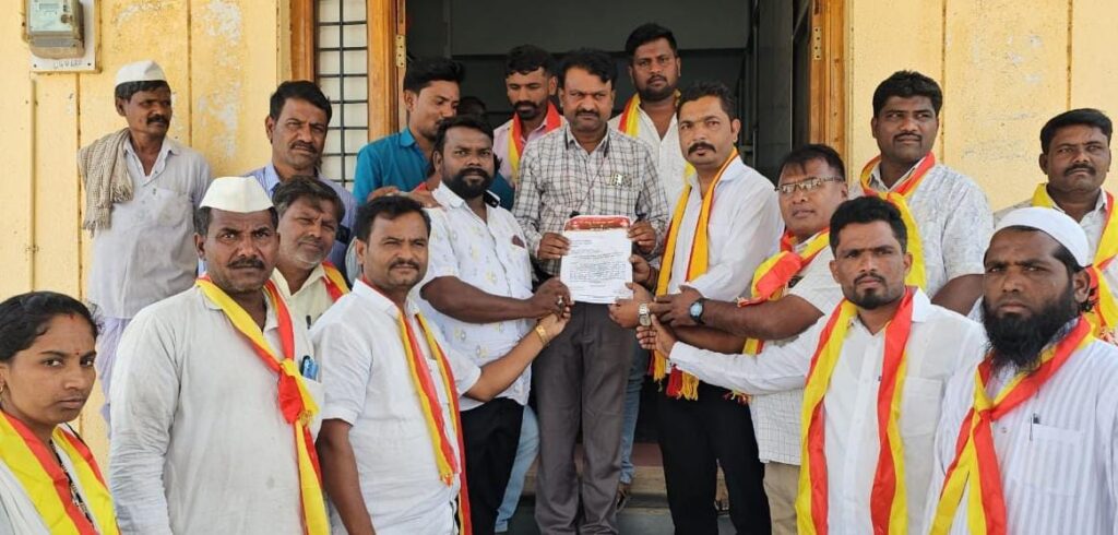 ದೇವರಹಿಪ್ಪರಗಿ: ಬೆಳಗಾಂವಿ ಗಡಿಭಾಗದಲ್ಲಿ ಮತ್ತು ಮಹಾರಾಷ್ಟçದಲ್ಲಿ ಕನ್ನಡಿಗರ ಮೇಲಿನ ಮರಾಠ ಪುಂಡರ ದೌರ್ಜನ್ಯ ಖಂಡಿಸಿ ನಮ್ಮ ಕರ್ನಾಟಕ ಸೇನೆಯ ಕಾರ್ಯಕರ್ತರು ಉಪತಹಶೀಲ್ದಾರರಿಗೆ ಮನವಿ ಸಲ್ಲಿಸಿದರು.