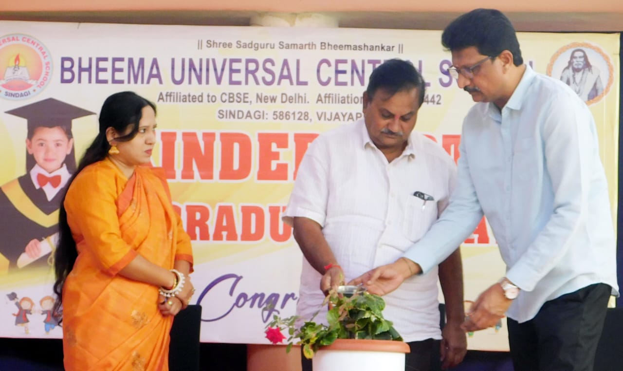 ಪಟ್ಟಣದ ಹೊರವಲಯದ ಭೀಮಾ ಮಾಂಟೆಸ್ಸರಿ ಶಾಲೆಯ ಯು.ಕೆ.ಜಿ ಮಕ್ಕಳ ಪದವಿ ಗ್ರಹಣ ಸಮಾರಂಭವನ್ನು ಸಸಿಗೆ ನೀರುಣಿಸುವ ಮೂಲಕ ಚಾಲನೆ ನೀಡಿ ಮಾತನಾಡಿದ ಅವರು, ಈ ಶಿಕ್ಷಣದ ವ್ಯವಸ್ಥೆಯಿಂದ ಮಗುವಿಗೆ ಅಕ್ಷರ ಜ್ಞಾನದ ಜೊತೆಗೆ ಆಟವಾಡುತ್ತಾ ವಿನೂತನ ಕಲಿಕೆಗೆ ಸಹಕರಿಸುತ್ತದೆ ಎಂದರು.
