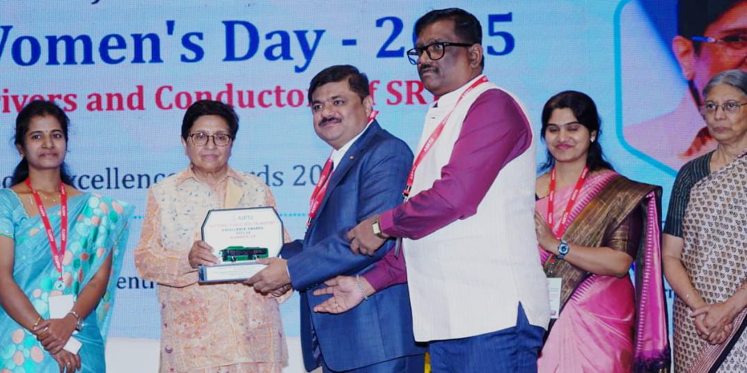ರಾಜ್ಯ ರಸ್ತೆ ಸಾರಿಗೆ ಸಂಸ್ಥೆಗಳ ಒಕ್ಕೂಟದ ವತಿಯಿಂದ ನವದೆಹಲಿಯಲ್ಲಿ ಆಯೋಜಿಸಿದ ಕಾರ್ಯಕ್ರಮದಲ್ಲಿ ಡಾ.ಕಿರಣ್ ಬೇಡಿ ಅವರು ಪ್ರಶಸ್ತಿ ಪ್ರದಾನ ಮಾಡಿದರು.