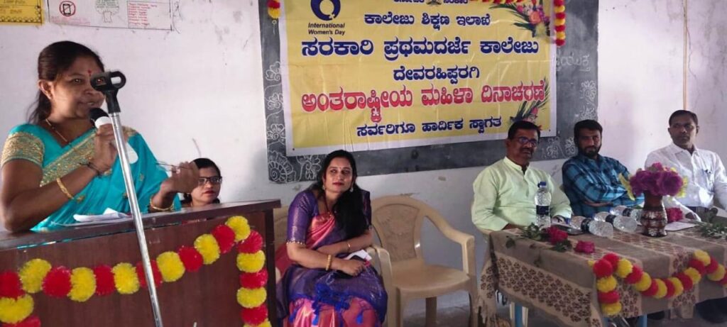ಪಟ್ಟಣದ ಸರ್ಕಾರಿ ಪ್ರಥಮ ದರ್ಜೆ ಕಾಲೇಜಿನಲ್ಲಿ ಸೋಮವಾರ ಜರುಗಿದ ಅಂತರಾಷ್ಟ್ರೀಯ ಮಹಿಳಾ ದಿನಾಚರಣೆಯನ್ನು ದೀಪ ಬೆಳಗಿಸುವುದರ ಮೂಲಕ ಉದ್ಘಾಟಿಸಿ ಮಾತನಾಡಿದರು. ಮಹಿಳೆ ಇಂದು ಸುಶಿಕ್ಷಿತಳಾಗಿ, ಸಮರ್ಥಳಾಗುವುದು ಅತ್ಯಂತ ಅಗತ್ಯವಾಗಿದೆ ಎಂದರು.