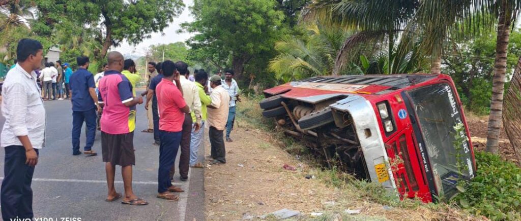 ಮುದ್ದೇಬಿಹಾಳ: ಸಾರಿಗೆ ಬಸ್ಸೊಂದು ಚಾಲಕನ ನಿಯಂತ್ರಣ ತಪ್ಪಿ ರಸ್ತೆ ಬದಿಯ ಚರಂಡಿಗೆ ಉರುಳಿದ ಘಟನೆ ತಾಲೂಕಿನ ಗೆದ್ದಲಮರಿ ಬಳಿ ನಡೆದಿದೆ.