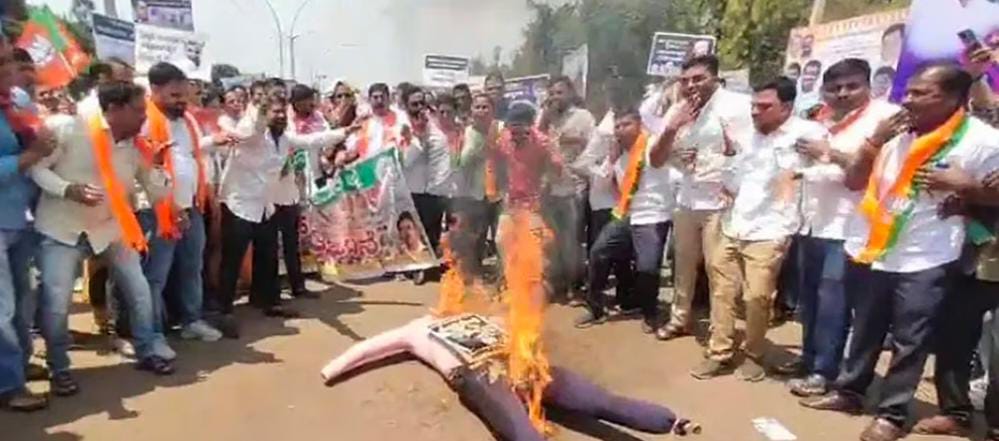 ಬೆಂಗಳೂರು: ರಾಜ್ಯದಲ್ಲಿ ಮುಸ್ಲಿಮರಿಗೆ ಶೇಕಡಾ 4 ರಷ್ಟು ಮೀಸಲಾತಿ ಕಲ್ಪಿಸಲು ಸಂವಿಧಾನ ಬದಲಾಯಿಸುವ ಕುರಿತು ಉಪಮುಖ್ಯಮಂತ್ರಿ ಡಿ ಕೆ ಶಿವಕುಮಾರ್ ಅವರ ಹೇಳಿಕೆ ಖಂಡಿಸಿ ಮಂಗಳವಾರ ಬಿಜೆಪಿ ರಾಜ್ಯದ ವಿವಿಧ ಭಾಗಗಳಲ್ಲಿ ಪ್ರತಿಭಟನೆ ನಡೆಸಿತು.