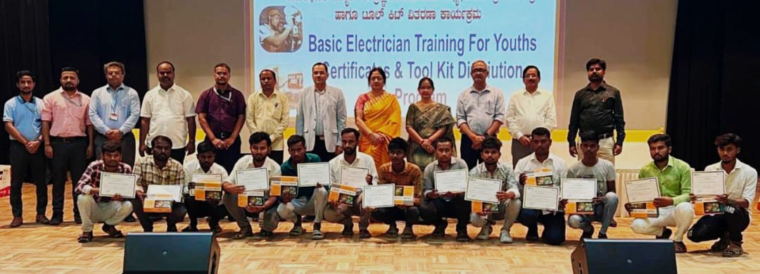 ಯುವ ಸಬಲೀಕರಣ ಉದ್ದೇಶ ದಿಂದ ಸುಮಾರು 40 ಯುವಕರಿಗೆ “ಮೂಲ ಎಲೆಕ್ಟ್ರಿಷಿಯನ್ ತರಬೇತಿಗಾಗಿ ಕೌಶಲ್ಯ ನವೀಕರಣ ಕೋರ್ಸ್” ಅನ್ನು ಪೂರ್ಣಗೊಳಿಸಿದ 40 ಯುವಕರಿಗೆ ವಿದ್ಯುತ್ ಉಪಕರಣದ ಕಿಟ್ಗಳು ಮತ್ತು ಪ್ರಮಾಣಪತ್ರಗಳನ್ನು ವಿತರಿಸಿದರು.