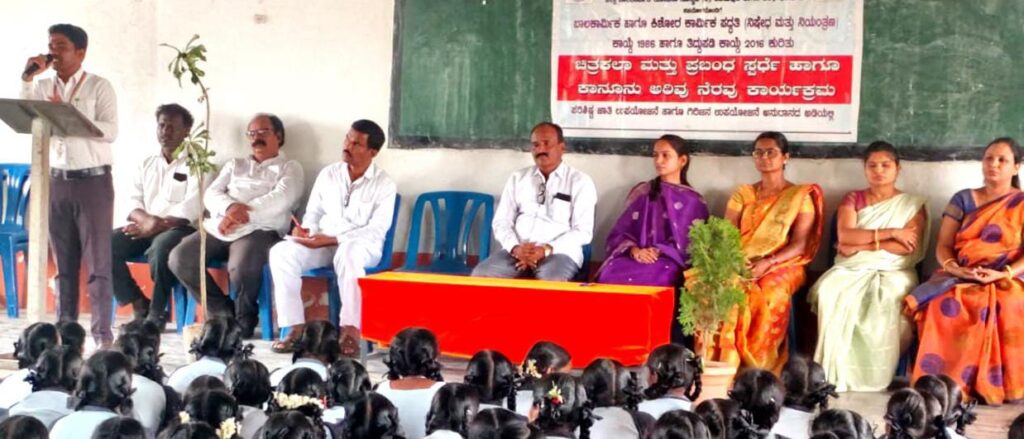 ಬಾಲ ಕಾರ್ಮಿಕ ಮತ್ತು ಕಿಶೋರ ಕಾರ್ಮಿಕ ಪದ್ಧತಿ ನಿಷೇಧ ಮತ್ತು ನಿಯಂತ್ರಣ ಕಾಯ್ದೆ ೧೯೮೬ ಹಾಗೂ ತಿದ್ದುಪಡಿ ೨೦೧೬ ಕುರಿತು ಮಾಹಿತಿ ಹೇಳಿದರು. ಬಾಲ ಕಾರ್ಮಿಕ ಮತ್ತು ಕಿಶೋರ ಕಾರ್ಮಿಕ ನಿಷೇಧ ಕಾಯ್ದೆ ಕುರಿತು ಶಾಲೆಯಲ್ಲಿ ಚಿತ್ರಕಲಾ ಮತ್ತು ಪ್ರಬಂಧ ಸ್ಪರ್ಧೆ ಏರ್ಪಡಿಸಲಾಗಿತ್ತು. ಸ್ಪರ್ಧೆಯಲ್ಲಿ ಪ್ರಥಮ,ದ್ವಿತೀಯ,ತೃತೀಯ ಸ್ಥಾನ ಪಡೆದ ಮಕ್ಕಳಿಗೆ ಬಹುಮಾನ ವಿತರಿಸಲಾಯಿತು.