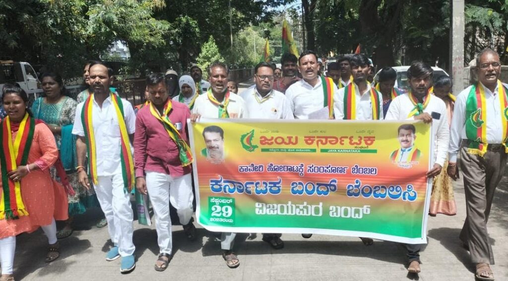 ವಿಜಯಪುರ: ಕಾವೇರಿ ಮತ್ತು ಮಹಾದಾಯಿ ನದಿ ನೀರು ಹಂಚಿಕೆಯ ಕುರಿತು ಖಂಡಿಸಿ ಜಯ ಕರ್ನಾಟಕ ಸಂಘಟನೆಯ ವತಿಯಿಂದ ರಾಜ್ಯದ ಮುಖ್ಯಮಂತ್ರಿಗಳಿಗೆ ಕಲ್ಲು ತಲೆಯ ಮೇಲೆ ಹೊತ್ತು ಪ್ರತಿಭಟಿಸಿ ಜಿಲ್ಲಾಧಿಕಾರಿಗಳ ಮುಖಾಂತರ ಮನವಿ ಸಲ್ಲಿಸಲಾಯಿತು.