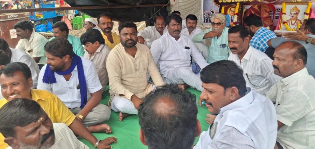ಪಟ್ಟಣದ ಬಸವೇಶ್ವರ ಸರ್ಕಲ್ ಬಳಿ ಸತ್ಯಾಗ್ರಹ ಟೆಂಟ್ ನಲ್ಲಿ ಹೋರಾಟಗಾರರು ಧರಣಿ ಕುಳಿತರು.