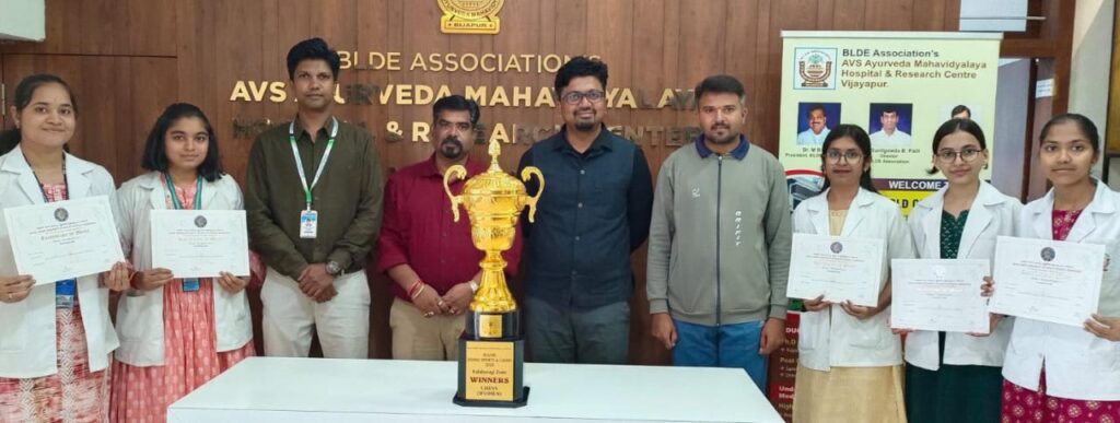 ರಾಯಚೂರಿನ ನವೋದಯ ಡೆಂಟಲ್ ಕಾಲೇಜಿನಲ್ಲಿ ಆಗಷ್ಟ 1 ಮತ್ತು 2 ರಂದು ನಡೆದ ಈ ಪಂದ್ಯಾವಳಿಯಲ್ಲಿ ಬಿ.ಎಲ್.ಡಿ.ಇ ಆಯುರ್ವೇದ ಕಾಲೇಜಿನ ವಿದ್ಯಾರ್ಥಿಗಳಾದ ದೀಪ್ತಿ ಮಂಗಲಗಿ, ಗೀತಾಂಜಲಿ ಮುದ್ನೂರ, ಸಾನಿಕಾ ದೇಶಪಾಂಡೆ, ಅನುರಾಧಾ ರೆಡ್ಡಿ ಮತ್ತು ಪೂಜಾ ಬಿರಾಜದಾರ ಅವರನ್ನೊಳಗೊಂಡ ತಂಡ ಪ್ರಥಮ ಸ್ಥಾನ ಪಡೆಯಿತು.