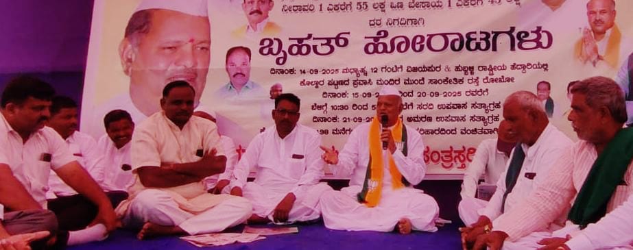 ಪಟ್ಟಣದ ಯುಕೆಪಿ ವೃತ್ತದ ಪ್ರವಾಸಿ ಮಂದಿರದ ಎದುರುಗಡೆ ಕೃಷ್ಣಾ ಮೇಲ್ದಂಡೆ ಯೋಜನೆಯ ೫೨೪ಮೀ ಎತ್ತರಿಸುವ ಅಡಿಯಲ್ಲಿ ಮುಳಗಡೆಯಾಗುವ ಜಮೀನುಗಳಿಗೆ ಯೋಗ್ಯ ಬೆಲೆ ಸಿಗಬೇಕೆಂದು ಆಗ್ರಹಿಸಿ ಮಾಜಿ ಸಚಿವ ಎಸ್.ಕೆ. ಬೆಳ್ಳುಬ್ಬಿ ನೇತೃತ್ವದಲ್ಲಿ ರೈತರು ಹಮ್ಮಿಕೊಂಡ ಸರದಿ ಉಪವಾಸ ಸತ್ಯಾಗ್ರಹದ ೨ನೇ ದಿನದ ಕಾರ್ಯಕ್ರಮದಲ್ಲಿ ಭಾಗವಹಿಸುವದರ ಜೊತೆಗೆ ಬೆಂಬಲ ನೀಡಿ ಮಾತನಾಡಿದರು.