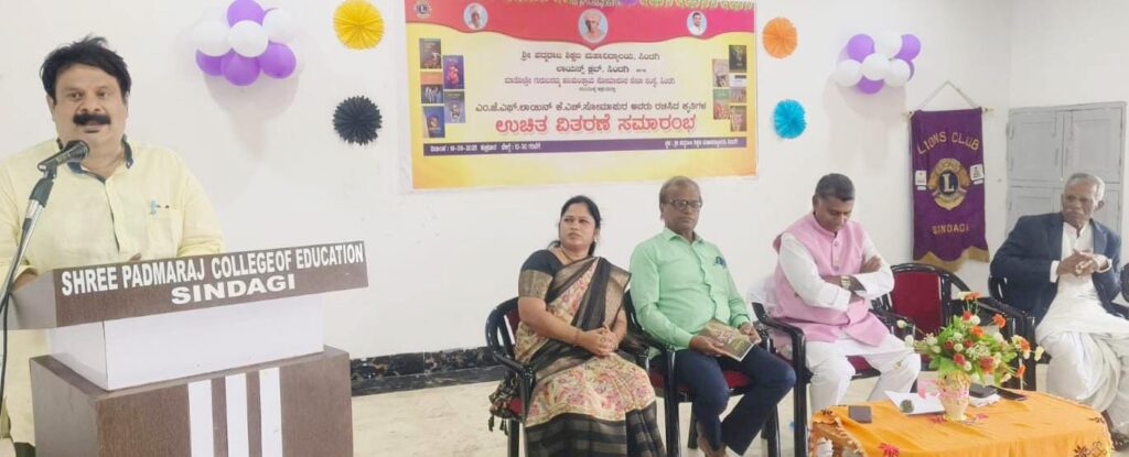 ಪಟ್ಟಣದ ಶ್ರೀಪದ್ಮರಾಜ ಶಿಕ್ಷಣ ಮಹಾವಿದ್ಯಾಲಯದಲ್ಲಿ ಲಾಯನ್ಸ್ ಕ್ಲಬ್ ಸಿಂದಗಿ ಹಾಗೂ ಮಾತೋಶ್ರೀ ಗುರುಬಸಮ್ಮ ಹ. ಸೋಮಾಪುರ ಸೇವಾ ಸಂಸ್ಥೆ ಸಹಯೋಗದಲ್ಲಿ ಹಮ್ಮಿಕೊಂಡ ಕೆ.ಎಚ್. ಸೋಮಾಪುರ ಅವರ ಕೃತಿಗಳ ಉಚಿತ ವಿತರಣೆ ಸಮಾರಂಭದಲ್ಲಿ ಭಾಗವಹಿಸಿ ಮಾತನಾಡಿದ ಅವರು, ಪುಸ್ತಕ ಓದುವುದರಿಂದ ನೆಮ್ಮದಿ, ಆತ್ಮಸ್ಥೈರ್ಯ, ವಿಶ್ವಾಸ, ಸಾಧನೆಯ ಗುರಿ ಹಾಗೂ ಸಮಾಜಮುಖಿ ಬದುಕು ಮೂಡುತ್ತದೆ. ಓದು ಬದುಕನ್ನು ಬೆಳಗಿಸುವ ಶಕ್ತಿಯನ್ನು ಹೊಂದಿದೆ ಎಂದರು.