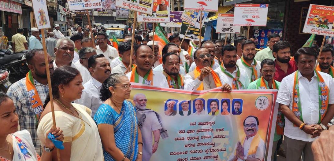 ಸಾರ್ವಜನಿಕರನ್ನು ಉದ್ದೇಶಿಸಿ ಮಾತನಾಡಿದ ಶಾಸಕ ಜಗದೀಶ ಗುಡಗುಂಟಿ, ಕೇಂದ್ರ ಸರ್ಕಾರ ಜನಪರ ಯೋಜನೆ ಜಾರಿಗೆ ತರುವ ಮೂಲಕ ದೇಶವನ್ನು ಅಭಿವೃದ್ಧಿ ಪಥದಲ್ಲಿ ಕೊಂಡೊಯ್ಯುತ್ತಿದ್ದಾರೆ. 140 ಕೋಟಿ ಜನರಿಗೆ ಒಳ್ಳೆಯದಾಗಲಿ ಎಂಬ ಉದ್ದೇಶದಿಂದ ಒಂದು ದೇಶ ಒಂದು ತೆರಿಗೆ ಯೋಜನೆ ಜಾರಿಗೆ ತರಲಾ ಗಿದೆ. ಉತ್ಪಾದಕರು, ವ್ಯಾಪಾರಸ್ಥರು ಹಾಗೂ ಗ್ರಾಹಕರಿಗೆ ಲಾಭವಾಗಲಿದೆ ಎಂದು ಅಭಿಪ್ರಾಯಪಟ್ಟರು. ಮಾಜಿ ಶಾಸಕ ಶ್ರೀಕಾಂತ ಕುಲಕರ್ಣಿ ಮಾತ ನಾಡಿ, ಕನ್ಯಾಕುಮಾರಿಯಿಂದ ಕಾಶ್ಮೀರದವರೆಗೆ ಎಲ್ಲ ದೇಶವಾಸಿಗಳಿಗೆ ಒಂದೇ ರೀತಿಯ ತೆರಿಗೆ ಜಾರಿಗೊಳಿಸಿರುವ ಕೇಂದ್ರ ಸರ್ಕಾರ ದೇಶವನ್ನು ವಿಶ್ವಗುರು ಮಾಡಲು ಪ್ರಧಾನಿ ಮೋದಿ ಕೆಲಸ ಮಾಡುತ್ತಿದ್ದಾರೆ ಎಂದರು.