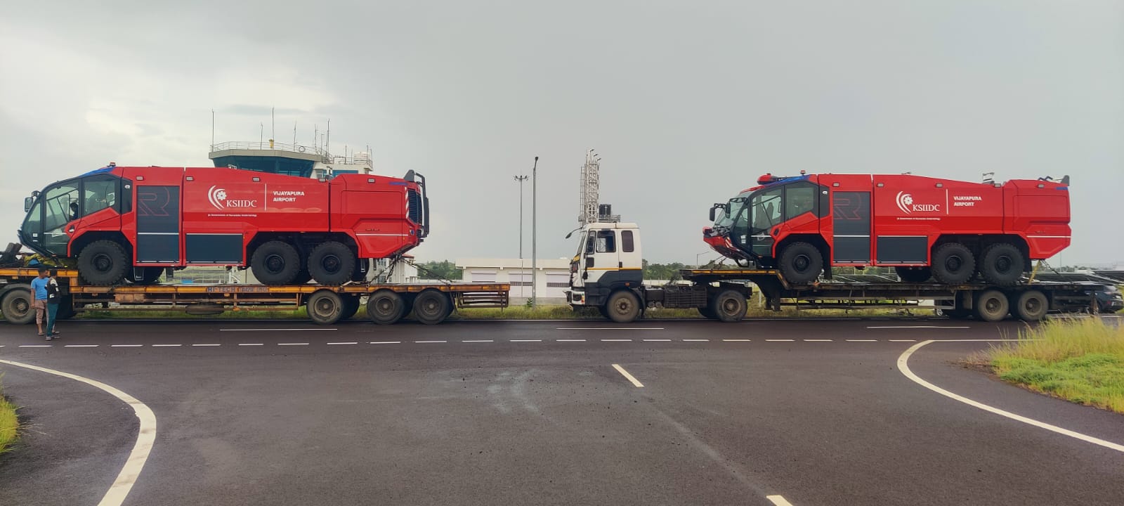 ಈ ಅಗ್ನಿಶಾಮಕ ವಾಹನಗಳು ನೆಲದ ಮೇಲಿನ ಬೆಂಕಿಯನ್ನು ನಂದಿಸಿಕೊಂಡು ವೇಗದಿಂದ ಮುನ್ನುಗ್ಗಬಲ್ಲವು. ವಿಜಯಪುರ ವಿಮಾನ ನಿಲ್ದಾಣದ ಮೂಲ ವಿನ್ಯಾಸದಲ್ಲಿ ಈ ಸೌಲಭ್ಯಗಳು ಇರಲಿಲ್ಲ. ಆಮೇಲೆ ಇದರ ಜತೆಗೆ ಇನ್ನೂ ಹಲವು ಅನುಕೂಲಗಳನ್ನು ಸೇರಿಸಲಾಯಿತು. ಆಸ್ಟ್ರಿಯಾದಿಂದ ಹಡಗಿನಲ್ಲಿ ಮುಂಬೈಗೆ ಬಂದಿಳಿದ ಈ ವಾಹನಗಳನ್ನು, ಅಲ್ಲಿಂದ ಟ್ರಕ್ ಮೂಲಕ ವಿಜಯಪುರಕ್ಕೆ ಸಾಗಿಸಿಕೊಂಡು ಬರಲಾಗಿದೆ