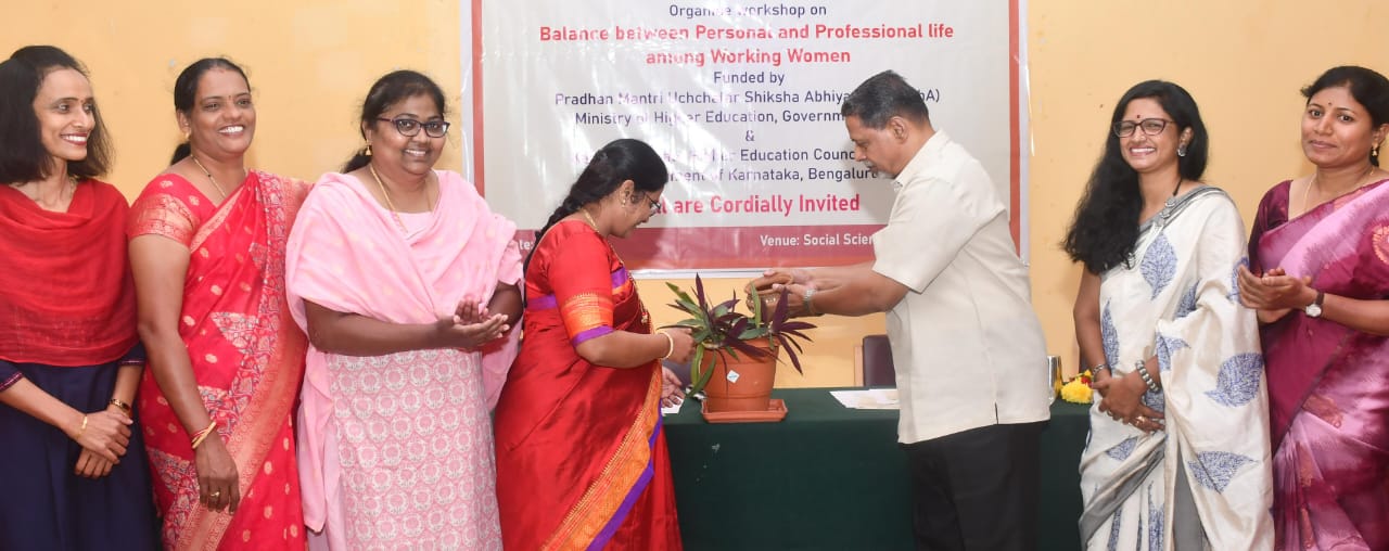 ನಗರದ ರಾಜ್ಯ ಅಕ್ಕಮಹಾದೇವಿ ಮಹಿಳಾ ವಿಶ್ವವಿದ್ಯಾನಿಲಯದಲ್ಲಿ ಪ್ರಧಾನಮಂತ್ರಿ ಉಚ್ಚತರ ಶಿಕ್ಷಾ ಅಭಿಯಾನ, ರಾಜ್ಯ ಉನ್ನತ ಶಿಕ್ಷಣ ಪರಿಷತ್, ಮಹಿಳಾ ವಿವಿಯ ಅಹಲ್ಯಾಬಾಯಿ ಸ್ನಾತಕೋತ್ತರ ಮಹಿಳಾ ಅಧ್ಯಯನ, ಸಂಶೋಧನೆ ಮತ್ತು ವಿಸ್ತರಣಾ ಕೇಂದ್ರದ ಸಹಯೋಗದಲ್ಲಿ ಉದ್ಯೋಗಸ್ಥ ಮಹಿಳೆಯರಿಗೆ ವೃತ್ತಿ ಮತ್ತು ವೈಯಕ್ತಿಕ ಜೀವನದ ನಡುವಿನ ಸಮತೋಲನ ಕುರಿತು ಮಂಗಳವಾರ ಹಮ್ಮಿಕೊಂಡಿದ್ದ ಒಂದು ದಿನದ ಕಾರ್ಯಾಗಾರದಲ್ಲಿ ಮಾತನಾಡಿದರು.