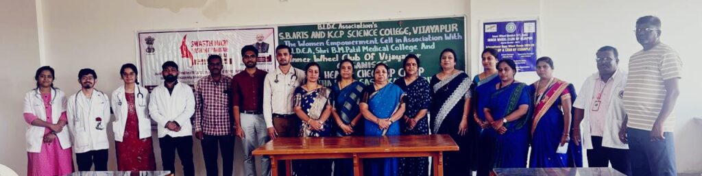 ವಿಜಯಪುರ: ನಗರದ ಬಿ.ಎಲ್.ಡಿ ಇ ಸಂಸ್ಥೆಯ ಎಸ್. ಬಿ. ಕಲಾ ಮತ್ತು ಕೆ.ಸಿ.ಪಿ. ವಿಜ್ಞಾನ ಮಹಾವಿದ್ಯಾಲಯದಲ್ಲಿ ಐಕ್ಯೂಎಸಿ, ಮಹಿಳಾ ಸಬಲೀಕರಣ ಕೋಶ, ಶ್ರೀ ಬಿ.ಎಂ. ಪಾಟೀಲ್ ವೈದ್ಯಕೀಯ ಕಾಲೇಜು ಮತ್ತು ವಿಜಯಪುರದ ಇನರ್ ವ್ಹೀಲ್ ಕ್ಲಬ್ ಸಹಯೋಗದಲ್ಲಿ ದಿನಾಂಕ ೨೪-೦೯-೨೦೨೫ ಬುಧವಾರದಂದು ‘ಸ್ವಸ್ಥ ನಾರಿ, ಶಕ್ತಿಶಾಲಿ ಕುಟುಂಬ ಅಭಿಯಾನದಡಿಯಲ್ಲಿ ಉಚಿತ ಆರೋಗ್ಯ ತಪಾಸಣಾ ಶಿಬಿರವನ್ನು ಅಯೋಜಿಸಲಾಯಿತು.