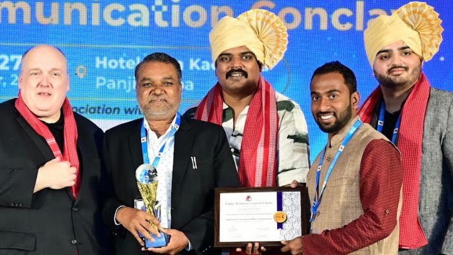 ಇತ್ತೀಚೆಗೆ ಗೋವಾದಲ್ಲಿ ನಡೆದ ೧೯ನೆಯ ಗ್ಲೋಬಲ್ ಕಮ್ಯುನಿಕೇಶನ್ ಸಮ್ಮೇಳನದಲ್ಲಿ ಪತ್ರಿಕೋದ್ಯಮ ಹಾಗೂ ಸಮೂಹ ಸಂವಹನ ವಿಭಾಗದ ಮುಖ್ಯಸ್ಥ ಪ್ರೊ.ಓಂಕಾರ ಕಾಕಡೆ ಹಾಗೂ ಸಹಾಯಕ ಪ್ರಾಧ್ಯಾಪಕ ಸಂದೀಪ್ ಅವರಿಗೆ ಸ್ವಿಟ್ಜರ್ಲೆಂಡ್ನ ಡೆಲ್ಲಾ ವಿಶ್ವವಿದ್ಯಾನಿಲಯದ ಮಾಧ್ಯಮ ತಜ್ಞ ಹಾಗೂ ಮಾಧ್ಯಮ ಅಧ್ಯಯನ ವಿಭಾಗದ ಡೀನ್ ಪ್ರೊ.ಮ್ಯಾಥ್ಯೂ ಹಿಬರ್ಡ್ ಮತ್ತು ಚಿತ್ರ ನಟ ಹಾಗೂ ನಿರ್ದೇಶಕ ಮತ್ತು ಕಾಂತಾರ ಖ್ಯಾತಿಯ ಪ್ರಮೋದ್ ಶೆಟ್ಟಿ ಅವರು ಪ್ರಶಸ್ತಿಯನ್ನು ಪ್ರದಾನ ಮಾಡಿದರು. ಗೋವಾ ಮುಖ್ಯಮಂತ್ರಿ ಪ್ರಮೋದ್ ಸಾವಂತ ಸಮ್ಮೇಳನದಲ್ಲಿ ಉಪಸ್ಥಿತರಿದ್ದರು.