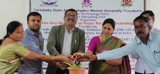 ನಗರದ ಕರ್ನಾಟಕ ರಾಜ್ಯ ಅಕ್ಕಮಹಾದೇವಿ ಮಹಿಳಾ ವಿಶ್ವವಿದ್ಯಾನಿಲಯದ ಪೇಪರ್ ಪುನರುತ್ಪಾದನಾ ಘಟಕದ ವತಿಯಿಂದ ಇತ್ತೀಚಿಗೆ ಆಯೋಜಿಸಿದ್ದ ಪ್ರಧಾನ ಮಂತ್ರಿ ರಾಷ್ಟ್ರೀಯ ಉಚ್ಚತರ ಶಿಕ್ಷಾ ಅಭಿಯಾನ ಹಾಗೂ ಕರ್ನಾಟಕ ರಾಜ್ಯ ಉನ್ನತ ಶಿಕ್ಷಣ ಪರಿಷತ್ತಿನ ಅನುದಾನದ ಅಡಿಯಲ್ಲಿ ‘ಪೇಪರ್ ಪುನರುತ್ಪಾದನಾ ತಂತ್ರಜ್ಞಾನ’ದ ಕುರಿತು ಒಂದು ದಿನದ ಕಾರ್ಯಾಗಾರವನ್ನು ಉದ್ಘಾಟಿಸಿ ಮಾತನಾಡಿದರು.