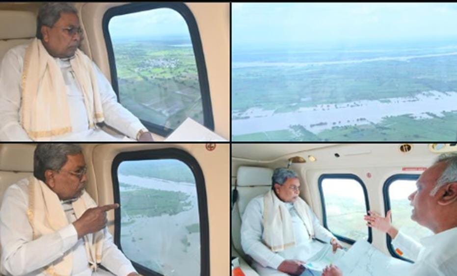 ಕಲಬುರಗಿ ಹಾಗೂ ಸುತ್ತಮುತ್ತಲಿನ ಪ್ರದೇಶಗಳಲ್ಲಿ ಎಡೆಬಿಡದೆ ಸುರಿಯುತ್ತಿರುವ ಮಳೆ ಹಾಗೂ ಮಹಾರಾಷ್ಟ್ರದ ಉಜನಿ ಮತ್ತು ನೀರಾ ಜಲಾಶಯಗಳಿಂದ ಹೆಚ್ಚುವರಿ ನೀರು ಬಿಡುತ್ತಿರುವ ಹಿನ್ನೆಲೆಯಲ್ಲಿ ಭೀಮಾ ನದಿ ಜಲಾನಯನ ಪ್ರದೇಶದಲ್ಲಿ ಪ್ರವಾಹ ಉಂಟಾಗಿ ಹಾನಿಗೀಡಾಗಿರುವ ಜಿಲ್ಲೆಗಳಲ್ಲಿ ಸಿದ್ದರಾಮಯ್ಯ ಮಂಗಳವಾರ ವೈಮಾನಿಕ ಸಮೀಕ್ಷೆ ನಡೆಸಿದರು.