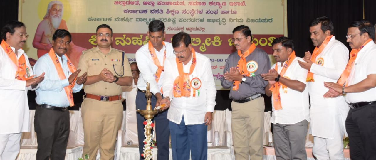ಜಿಲ್ಲಾಡಳಿತ, ಜಿಲ್ಲಾ ಪಂಚಾಯತ, ಸಮಾಜ ಕಲ್ಯಾಣ ಇಲಾಖೆ, ಕರ್ನಾಟಕ ವಸತಿ ಶಿಕ್ಷಣ ಸಂಸ್ಥೆಗಳ ಸಂಘ ಹಾಗೂ ಕರ್ನಾಟಕ ಮಹರ್ಷಿ ವಾಲ್ಮೀಕಿ ಪರಿಶಿಷ್ಟ ಪಂಗಡಗಳ ಅಭಿವೃದ್ಧಿ ನಿಗಮ ವಿಜಯಪುರ ಇವರ ಸಹಯೋಗದಲ್ಲಿ ಮಂಗಳವಾರ ನಗರದ ಕಂದಗಲ್ ಶ್ರೀ ಹನುಮಂತರಾಯ ರಂಗಮಂದಿರದಲ್ಲಿ ಶ್ರೀ ಮಹರ್ಷಿ ವಾಲ್ಮೀಕಿ ಜಯಂತಿ ಕಾರ್ಯಕ್ರಮಕ್ಕೆ ಚಾಲನೆ ನೀಡಿ, ಅವರ ಭಾವಚಿತ್ರಕ್ಕೆ ಪುಷ್ಪಾರ್ಚನೆ ಮಾಡಿ, ಮಾತನಾಡಿದ ಅವರು ಆದರ್ಶ ವ್ಯಕ್ತಿಯ ಚಿತ್ರಣ, ಕೌಟುಂಬಿಕ, ಮಾನವೀಯತೆ ಹಾಗೂ ಸಾಮಾಜಿಕ ಮೌಲ್ಯ ಕಾಣಬಹುದಾಗಿದೆ. ಮನುಕುಲದ ಏಳಿಗೆಗಾಗಿ ಅವರು ನೀಡಿದ ಸಂದೇಶ ದಾರಿದೀಪವಾಗಿವೆ. ಮಹರ್ಷಿ ಅವರು ರಾಮಾಯಣದ ಮೂಲಕ ಪ್ರತಿಯೊಬ್ಬರು ಜೀವನದಲ್ಲಿ ಎದುರಿಸುವ ಸಂಗತಿಗಳು ಅಡಕವಾಗಿದ್ದು, ನಿತ್ಯ ಸತ್ಯವಾಗಿರುವ ಜೀವನ ಮೌಲ್ಯಗಳನ್ನು ಹಾಗೂ ಸಂದೇಶಗಳನ್ನು ಮಹಾಕಾವ್ಯದ ಮೂಲಕ ಸಮಾಜಕ್ಕೆ ನೀಡಿದ್ದಾರೆ. ಆ ವಿಚಾರಗಳನ್ನು ಪಾಲಿಸೋಣ ವಾಲ್ಮೀಕಿ ಮಹರ್ಷಿ ಅವರ ನೀತಿ ಉಕ್ತಿಗಳು ಉತ್ತಮ ಬದುಕು ರೂಪಿಸಿಕೊಳ್ಳಲು ಸಹಕಾರಿಯಾಗಿವೆ ಎಂದು ಹೇಳಿದರು.