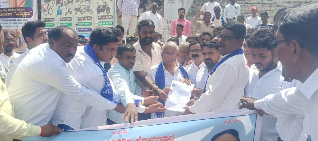 ಇಲ್ಲಿನ ದೇಸಾಯಿ ವೃತ್ತದಲ್ಲಿ ಬುಧವಾರ ಸುಪ್ರೀಂಕೋರ್ಟ್ ನ್ಯಾಯಮೂರ್ತಿ ಬಿ. ಆರ್ ಗವಾಯಿ ಮೇಲೆ ಶೂ ಎಸೆದ ಕೃತ್ಯ ಖಂಡಿಸಿ ಕರ್ನಾಟಕ ರಾಜ್ಯ ದಲಿತ ಸಂಘರ್ಷ ಸಮಿತಿ (ಸಾಗರ ಬಣ) ನೇತೃತ್ವದಲ್ಲಿ ಪ್ರತಿಭಟನೆ ಮೂಲಕ ರಸ್ತೆ ತಡೆ ಮಾಡಿ ತಹಶೀಲ್ದಾರ ಅನೀಲ ಬಡಿಗೇರಗೆ ಮನವಿ ಸಲ್ಲಿಸಿದರು.