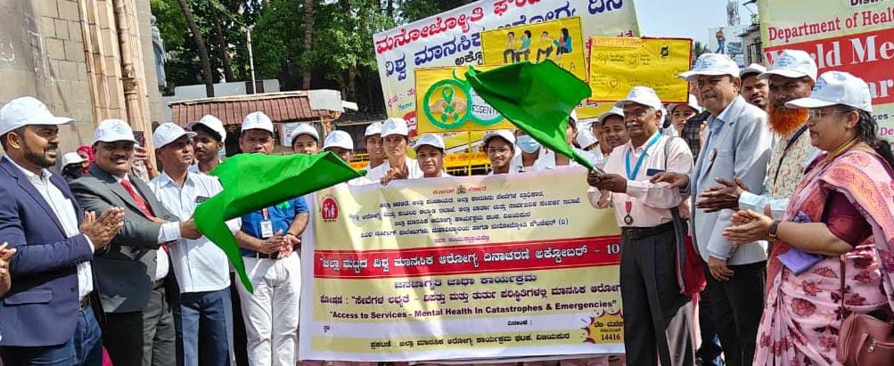 ಜಿಲ್ಲಾ ಆಡಳಿತ ಜಿಲ್ಲಾಡಳಿತ, ಜಿಲ್ಲಾ ಪಂಚಾಯತ, ಜಿಲ್ಲಾ ಕಾನೂನು ಸೇವೆಗಳ ಪ್ರಾಧಿಕಾರ, ಜಿಲ್ಲಾ ಆರೋಗ್ಯ ಮತ್ತು ಕುಟುಂಬ ಕಲ್ಯಾಣ ಇಲಾಖೆ, ವಾರ್ತಾ ಮತ್ತು ಸಾರ್ವಜನಿಕ ಸಂಪರ್ಕ ಇಲಾಖೆ, ಜಿಲ್ಲಾ ಮಾನಸಿಕ ಆರೋಗ್ಯ ಕಾರ್ಯಕ್ರಮ ಘಟಕ ವಿಜಯಪುರ ಹಾಗೂ ವಿವಿದ ನರ್ಸಿಂಗ್ ಕಾಲೇಜು ಹಾಗೂ ಮನೋಜ್ಯೋತಿ ಫೌಂಡೇಶನ್ ವಿಜಯಪುರ ಇವರ ಸಂಯುಕ್ತ ಆಶ್ರಯದಲ್ಲಿ ಶುಕ್ರವಾರ ಹಮ್ಮಿಕೊಂಡ ವಿಶ್ವ ಮಾನಸಿಕ ಆರೋಗ್ಯ ದಿನಾಚರಣೆಯ ಜನಜಾಗೃತಿ ಜಾಥಾ ಕಾರ್ಯಕ್ರಮಕ್ಕೆ ಪದ್ಮಶ್ರೀ ಪ್ರಶಸ್ತಿ ವಿಜೇತರರು ಹಾಗೂ ಹಿರಿಯ ಮನೋರೋಗ ತಜ್ಞ ಡಾ|| ಸಿ.ಆರ್. ಚಂದ್ರಶೇಖರ ಹಾಗೂ ಜಿಲ್ಲಾ ಆರೋಗ್ಯ ಮತ್ತು ಕುಟುಂಬ ಕಲ್ಯಾಣ ಅಧಿಕಾರಿ ಡಾ|| ಸಂಪತ್ತ ಗುಣಾರಿ ಅವರೊಂದಿಗೆ ಜಂಟಿಯಾಗಿ ಹಸಿರು ನಿಶಾನೆ ತೋರಿಸುವ ಮೂಲಕ ಚಾಲನೆ ನೀಡಿ, ಜಿಲ್ಲಾ ಆರೋಗ್ಯ ಮತ್ತು ಕುಟುಂಬ ಕಲ್ಯಾಣ ಅಧಿಕಾರಿಗಳ ಕಾರ್ಯಾಲಯದಲ್ಲಿ ಹಮ್ಮಿಕೊಂಡ ಕಾರ್ಯಕ್ರಮದಲ್ಲಿ ಅವರು ಮಾತನಾಡಿದರು.