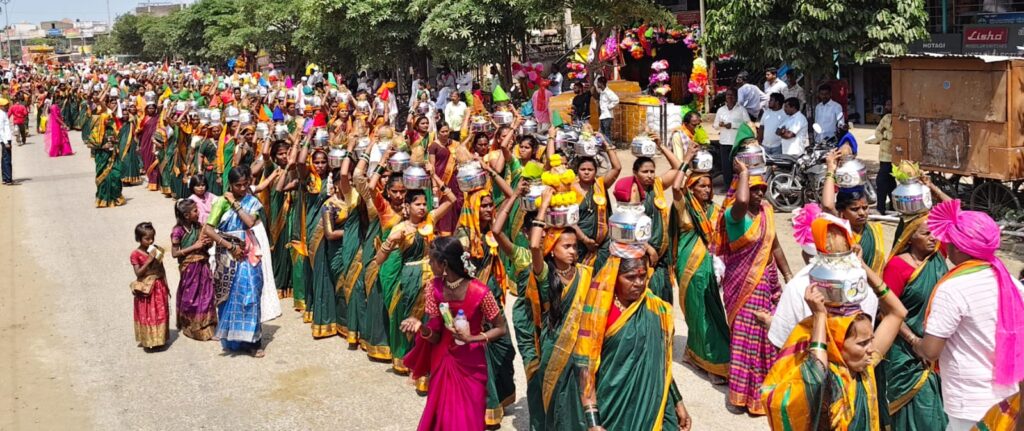 ನೆರೆದ ಭಕ್ತಸಮೂಹವು ಮೆರವಣಿಗೆಯ ಮೇಲೆ ಪುಷ್ಪವೃಷ್ಟಿಗೈದರು. ಸುಡುಬಿಸಿಲನ್ನು ಲೆಕ್ಕಿಸದೇ ಕುಂಭ ಹೊತ್ತ, ಗ್ರಂಥ ತಲೆಯಲ್ಲಿ ಇಟ್ಟುಕೊಂಡಿದ್ದ ಭಕ್ತ ಹೆಜ್ಜೆ ಹಾಕುತ್ತಿದ್ದರೆ, ಓಂ ನಮಃ ಶಿವಾಯ ಎಂಬ ಪಂಚಾಕ್ಷರಿ ಮಂತ್ರ ಅವರಲ್ಲಿ ಅಂತಃಶಕ್ತಿಯನ್ನು ಹೊರಹೊಮ್ಮಿಸುತ್ತಿತ್ತು. ಅಜ್ಜನ ಭಜನೆಗಳು ಆಯಾಸವನ್ನು ಮರೆಸುತ್ತಿದ್ದವು. ಬರೋಬ್ಬರಿ ೪ ಗಂಟೆಗೂ ಅಧಿಕ ಕಾಲ ಮೆರವಣಿಗೆ ಸಾಗಿತು.