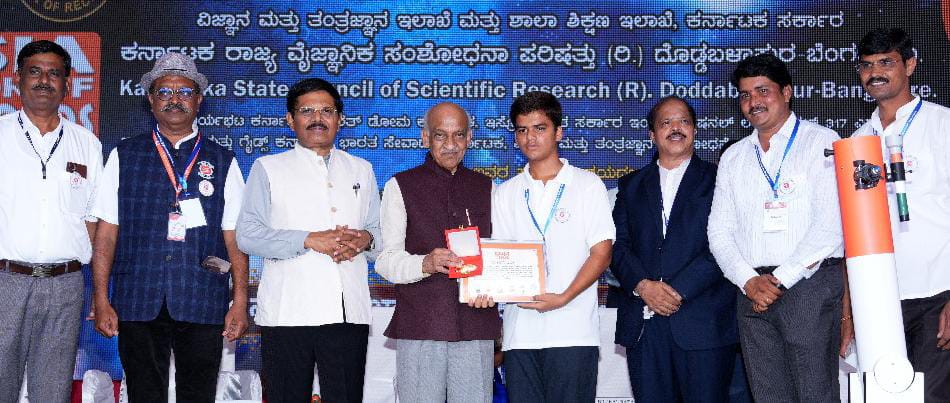 ರಾಜ್ಯಪಾಲರಾದ ಥಾವರ್ ಚಂದ್ ಗೆಹ್ಲೋಟ ಅವರು , ಇಸ್ರೋದ ಶ್ರೇಷ್ಠ ವಿಜ್ಞಾನಿಗಳಾದ ಕಿರಣಕುಮಾರರು ಹಾಗೂ ಪರಿಷತ್ ಅಧ್ಯಕ್ಷರಾದ ಹುಲಿಕಲ್ಲ ನಟರಾಜ ಸೇರಿ ಕುಮಾರ ಕೃಷ್ಣ ಕುಂಬಾರನಿಗೆ “ನಾನೂ ವಿಜ್ಞಾನಿ-2025” ಪ್ರಶಸ್ತಿಯನ್ನು ಹಾಗೂ ಮುಳವಾಡ ಪ್ರೌಢಶಾಲಾ ವಿಜ್ಞಾನ ಶಿಕ್ಷಕರಾದ ಡಿ.ಎಸ್.ಖಿಲಾರಿ ಅವರಿಗೂ ವರ್ಲ್ಡ ಆಫ್ ರೆಕಾರ್ಡ ಪ್ರಶಸ್ತಿಯಯನ್ನು ನೀಡಿ ಗೌರವಿಸಿದರು.