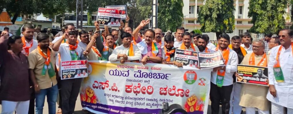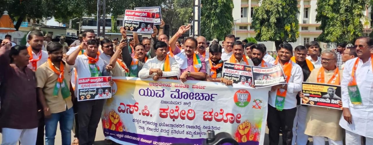 ವಿಜಯಪುರದಲ್ಲಿ ಬಿಜೆಪಿ ಕಾರ್ಯಕರ್ತರಿಂದ ಪ್ರತಿಭಟನೆ | ಎಸ್ಪಿ ಕಚೇರಿಗೆ ಬೃಹತ್ ಪ್ರತಿಭಟನಾ ರ್ಯಾಲಿ