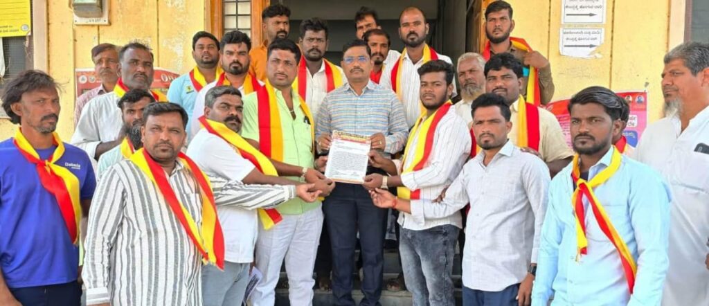 ಪಟ್ಟಣದ ತಹಶೀಲ್ದಾರ ಕಾರ್ಯಾಲಯಕ್ಕೆ ಆಗಮಿಸಿದ ಕರವೇ ಕಾರ್ಯಕರ್ತರು ಮನೆಗಳ ಉತಾರೆ ಒದಗಿಸುವಲ್ಲಿ ಆದ ಸಮಸ್ಯೆಗಳ ಕುರಿತು ಗಮನ ಸೆಳೆದರು.