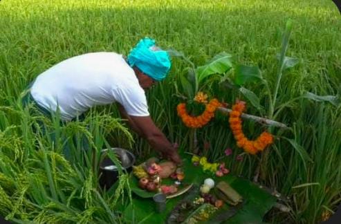 ಹೊಲದಲ್ಲಿ ಕಾಲಿಡುವ ಮುನ್ನ ರೈತ ತನ್ನ ಭೂಮಿಗೆ ನಮಸ್ಕರಿಸಿ ಬಂಗಾರದ ಬೆಳೆ ಕೊಡು ಎಂದು ಬೇಡಿಕೊಂಡು ಬೀಜವನ್ನು ಬಿತ್ತುತ್ತಾನೆ, ನೀರು ಹಾಯ್ಸುತ್ತಾನೆ ಬೆಳೆ ಬೆಳೆಯುತ್ತಾನೆ. ಒಂದೊಳ್ಳೆಯ ಫಸಲು ಬೆಳೆದು ನಿಂತಾಗ ಸಕುಟುಂಬ ಪರಿವಾರ ಸಮೇತ ಅತ್ಯಂತ ವಿಜೃಂಭಣೆಯಿಂದ ಭೂಮಿ ತಾಯಿಗೆ ಪೂಜೆ ಸಲ್ಲಿಸಿ ಆಕೆಯ ಮಡಿಲಲ್ಲಿ ನೈವೇದ್ಯವನ್ನು ಇಟ್ಟು ಎಲ್ಲರೊಂದಿಗೆ ತಾನು ಆಹಾರವನ್ನು ಸ್ವೀಕರಿಸುತ್ತಾನೆ. ಇದು ಆತ ತನಗೆ ಒಳ್ಳೆಯ ಬೆಳೆಯನ್ನು ನೀಡಿದ ಭೂಮಿತಾಯಿಗೆ ಅರ್ಪಿಸುವ ಕೃತಜ್ಞತೆಯ ಕ್ರಿಯೆ.