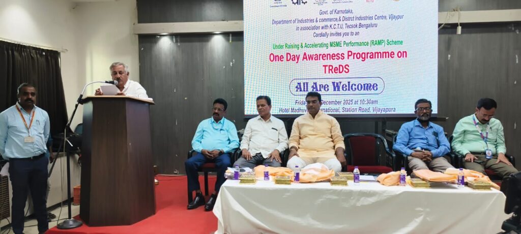 ವಿಜಯಪುರ: ಕೈಗಾರಿಕೆ ಮತ್ತು ವಾಣಿಜ್ಯ ಇಲಾಖೆ, ಜಿಲ್ಲಾ ಕೈಗಾರಿಕಾ ಕೇಂದ್ರ ವಿಜಯಪುರ, ಕರ್ನಾಟಕ ತಾಂತ್ರಿಕ ಉನ್ನತೀಕರಣ ಪರಿಷತ್ ಬೆಂಗಳೂರು ಹಾಗೂ ಕರ್ನಾಟಕ ತಾಂತ್ರಿಕ ಸಲಹಾ ಸೇವಾ ಸಂಸ್ಥೆ, (ಟೆಕ್ಸಾಕ್) ಬೆಂಗಳೂರ ಇವರ ಸಹಯೋಗದಲ್ಲಿ ಎಂ.ಎಸ್. ಎಂ.ಇ. ಗಳ ಕಾರ್ಯಕ್ಷಮತೆಯನ್ನು ಹೆಚ್ಚಿಸುವುದು ಮತ್ತು ವೇಗಗೊಳಿಸುವುದು (ರ್ಯಾಂಪ್) ಯೋಜನೆಯಡಿಯಲ್ಲಿ ಟ್ರೆಡ್ಸ್ ಯೋಜನೆಯ ಒಂದು ದಿನದ ಅರಿವು ಮೂಡಿಸುವ ಕಾರ್ಯಕ್ರಮ ಇತ್ತಿಚಿಗೆ ನಗರದ ಹೋಟೆಲ್ ಮಧುವನ ಇಂಟರ್ ನ್ಯಾಷನಲ್, ನಡೆಯಿತು.