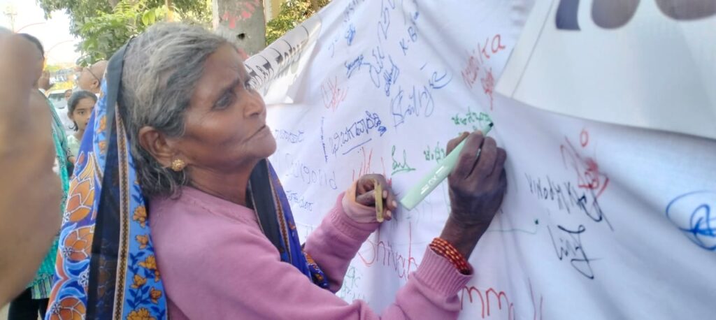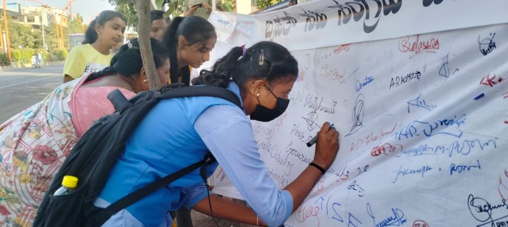 ಸರಕಾರದ ಈ ನೀತಿಯನ್ನು ಖಂಡಿಸಿ ಕಳೆದ ನೂರು ದಿನಗಳಿಂದ ಅನಿರ್ದಿಷ್ಟ ಧರಣಿ ಹಾಗೂ 8 ದಿನಗಳಿಂದ ಅಹೋರಾತ್ರಿ ಧರಣಿ ನಡೆಯುತ್ತಿದ್ದು ಸರಕಾರ ಇನ್ನು ಜನಗಳ ಹೋರಾಟಕ್ಕೆ ಸ್ಪಂದಿಸದಿದ್ದಕ್ಕಾಗಿ ಜಿಲ್ಲೆಯ ಜನ ಜಾಗೃತಿ ಮೂಡಿಸುವ ಉದ್ದೇಶಕ್ಕಾಗಿ 100 ಮೀಟರ್ ಬ್ಯಾನರ್ ಮೇಲೆ ಸಾವಿರಾರು ಸಹಿಯನ್ನು ದಿನವಿಡಿ ಸಹಿ ಸಂಗ್ರಹ ಮಾಡಲಾಯಿತು.