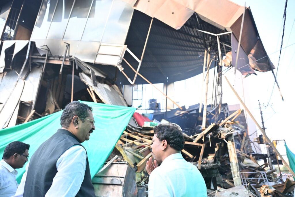 ವಿಜಯಪುರ: ನಗರದ ಸೊಲ್ಲಾಪುರ ರಸ್ತೆಯಲ್ಲಿರುವ ಕೃಷ್ಣಾ ಪ್ಯಾಲೇಸ್ ದಲ್ಲಿ ಸೋಮವಾರ ನಸುಕಿನಜಾವ ಆಕಸ್ಮಿಕ ಬೆಂಕಿ ಹೊತ್ತಿಕೊಂಡು, ಕಟ್ಟಡ ಸುಟ್ಟು ಅಪಾರ ಪ್ರಮಾಣದಲ್ಲಿ ನಷ್ಟ ಉಂಟಾಗಿರುವ ಹಿನ್ನೆಲೆ ನಗರ ಶಾಸಕ ಬಸನಗೌಡ ಪಾಟೀಲ ಯತ್ನಾಳ ರವರು ಭೇಟಿ ನೀಡಿ ಪ್ಯಾಲೇಸ್ ಮಾಲೀಕರಿಗೆ ಸಾಂತ್ವನ ಹೇಳಿ, ಘಟನೆ ಬಗ್ಗೆ ಮಾಹಿತಿ ಪಡೆದುಕೊಂಡರು.
