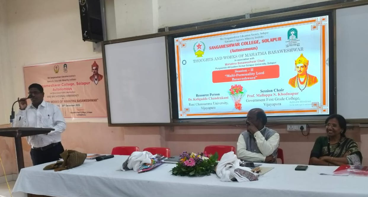ಅವರು ಮಹಾರಾಷ್ಟçದ ಸೋಲಾಪೂರದ ಅಹಲ್ಯಾಬಾಯಿ ಹೋಳ್ಕರ ಸೋಲಾಪೂರ ವಿಶ್ವವಿದ್ಯಾಲಯ ಹಾಗೂ ಸಂಗಮೇಶ್ವರ ಕಾಲೇಜ (ಸ್ವಾಯತ್ತ) ಇವುಗಳ ಸಹಯೋಗದಡಿಯಲ್ಲಿ “ಮಹಾತ್ಮಾ ಬಸವೇಶ್ವರ ವಿಚಾರಧಾರೆ ಮತ್ತು ಕಾರ್ಯಸಾಧನೆಗಳು” ವಿಷಯ ಕುರಿತ ಒಂದು ದಿನದ ರಾಷ್ಟ್ರೀಯ ವಿಚಾರ ಸಂಕೀರಣದದಲ್ಲಿ ಪ್ರಥಮ ಗೋಷ್ಠಿಯಲ್ಲಿ ಸಂಪನ್ಮೂಲ ವ್ಯಕ್ತಿಗಳಾಗಿ ಮಾತನಾಡುತ್ತಿದ್ದರು.