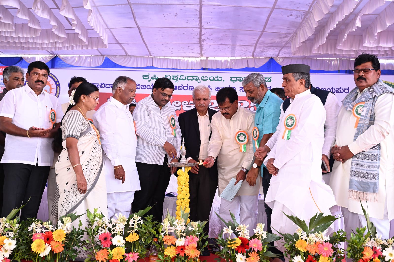ಕೃಷಿ ವಿಶ್ವವಿದ್ಯಾಲಯ ಧಾರವಾಡ, ಕೃಷಿ ಇಲಾಖೆ, ಜಿಲ್ಲಾ ಪಂಚಾಯತ್, ಆತ್ಮಾಯೋಜನೆ ಇವುಗಳ ಸಂಯುಕ್ತ ಆಶ್ರಯದಲ್ಲಿ, ನಗರದ(ಹಿಟ್ನಳ್ಳಿ ಫಾರ್ಮ)ಪ್ರಾದೇಶಿಕ ಸಂಶೋಧನಾ ಕೇಂದ್ರದಲ್ಲಿ ದಿನಾಂಕ ೪ರಿಂದ ೬ ರವರೆಗೆ ೩ ದಿನಗಳ ಕಾಲ ನಡೆಯುವ ಕೃಷಿ ಮೇಳ೨೦೨೫-೨೬ ಕಾರ್ಯಕ್ರಮಕ್ಕೆ ಚಾಲನೆ ನೀಡಿ ಅವರು ಮಾತನಾಡಿದರು.