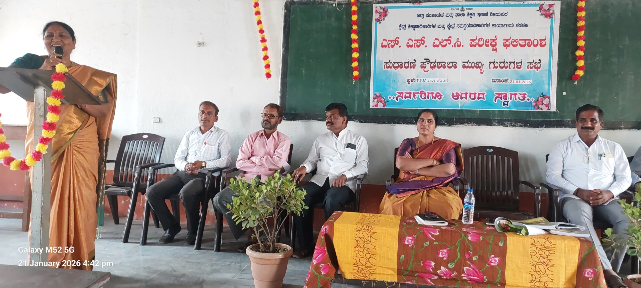 ಚಡಚಣದ ಸಂಗಮೇಶ್ವರ ಮಾಧ್ಯಮಿಕ ಶಾಲೆಯಲ್ಲಿ ಬುಧವಾರ ನಡೆದ ಎಸ್ಎಸ್ಎಲ್ ಸಿ ಪರೀಕ್ಷೆ ಫಲಿತಾಂಶ ಸುಧಾರಣೆ ಕುರಿತು ಪ್ರೌಢಶಾಲಾ ಮುಖ್ಯ ಶಿಕ್ಷಕರ ಸಭೆಯಲ್ಲಿ ಶಾಲಾ ಶಿಕ್ಷಣ ಇಲಾಖೆ ಉಪನಿರ್ದೇಶಕಿ (ಅಭಿವೃದ್ಧಿ) ಉಮಾದೇವಿ ಸೊನ್ನದ ಮಾತನಾಡಿದರು