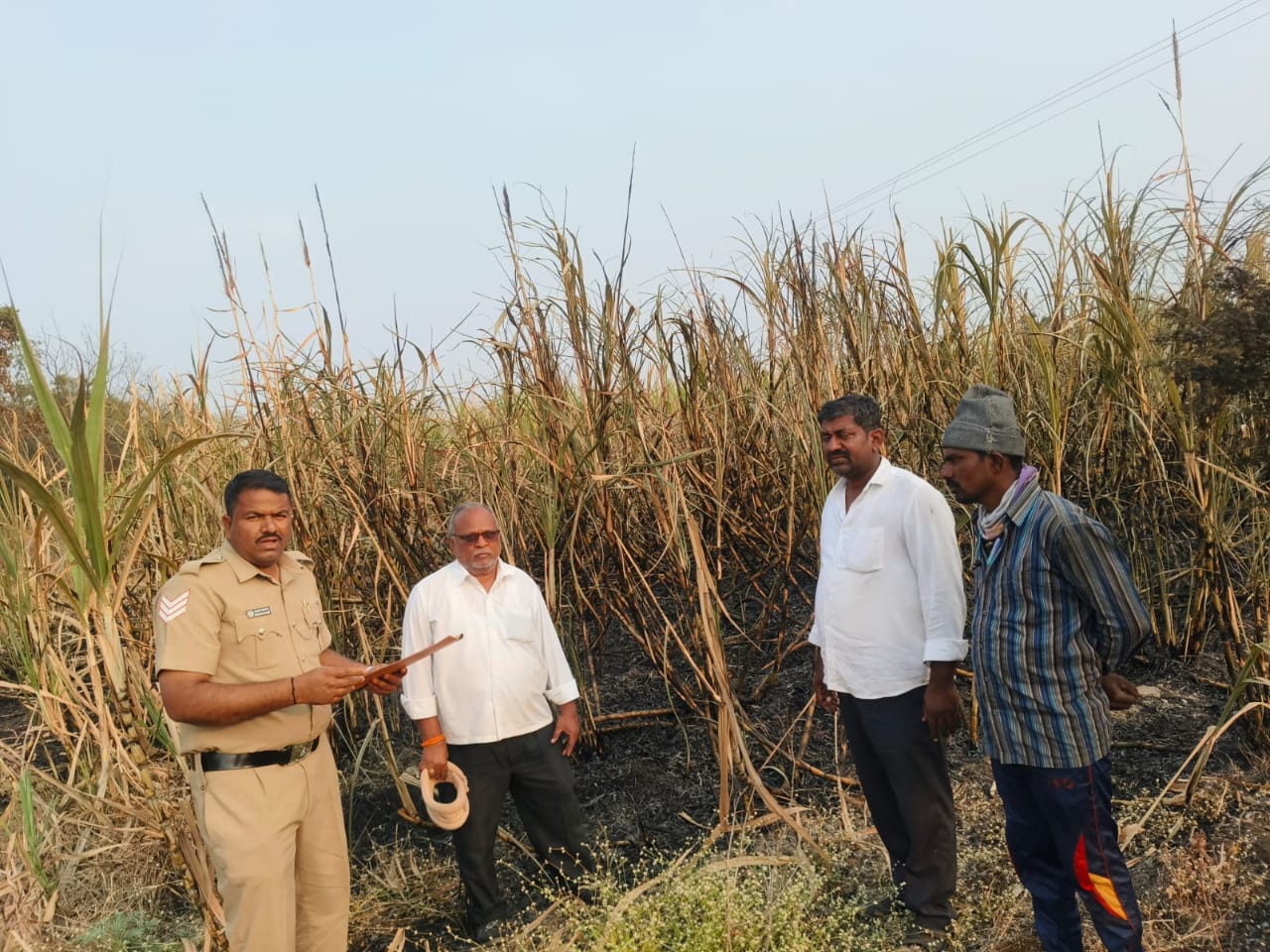 ಬೆಳಿಗ್ಗೆ ೧೦ ಗಂಟೆಯ ವೇಳೆಯಲ್ಲಿ ಆಕಸ್ಮಿಕವಾಗಿ ಕಬ್ಬಿನ ಪಡದ ಮಧ್ಯೆ ಹಾದುಹೋದ ಎಲ್.ಟಿ ವಿದ್ಯುತ್ ಲೈನ ತಂತಿ ಗಾಳಿಯಲ್ಲಿ ಜೋಡಣೆಯಾಗಿ ವಿದ್ಯುತ್ ಶಾರ್ಟ ಸರ್ಕ್ಯೂಟದಿಂದ ಉತ್ಪತ್ತಿಯಾದ ಬೆಂಕಿಯ ಕಿಡಿಯು ತಂತಿಯ ಕೆಳಭಾಗದ ಒಣಗಿದ ರವದಿ ತುಂಬಿದ ಕಬ್ಬಿನ ಗದ್ದೆಯಲ್ಲಿ ಬಿದ್ದಿದೆ.