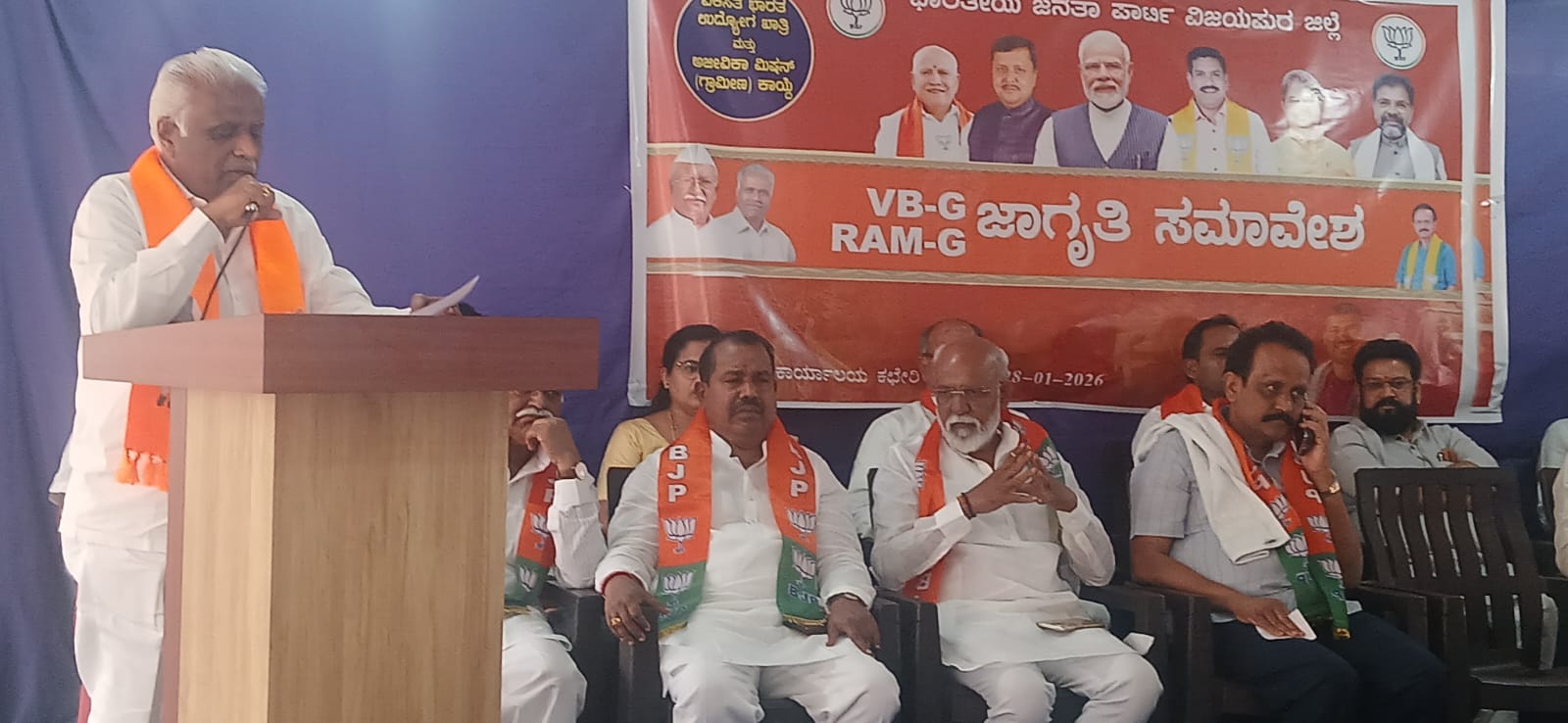 ಅಧ್ಯಕ್ಷತೆ ವಹಿಸಿದ್ದ ಭಾಜಪಾ ಜಿಲ್ಲಾಧ್ಯಕ್ಷರಾದ ಗುರುಲಿಂಗಪ್ಪ ಅಂಗಡಿ ಅವರು ಮಾತನಾಡಿ, “ಯುಪಿಎ ಅವಧಿಯಲ್ಲಿ ಪಶ್ಚಿಮ ಬಂಗಾಳ, ಒಡಿಶಾದಂತಹ ರಾಜ್ಯಗಳಲ್ಲಿ ಸತ್ತವರ ಹೆಸರಿನಲ್ಲಿ ಹಣ ಲೂಟಿ ಮಾಡಲಾಗಿತ್ತು. ‘ವಿಬಿ-ಜಿ ರಾಮ್ ಜಿ’ ಯೋಜನೆಯು ಇಂತಹ ಭ್ರಷ್ಟಾಚಾರಕ್ಕೆ ಕಡಿವಾಣ ಹಾಕಿ, ಗ್ರಾಮ ಪಂಚಾಯತ್ಗಳನ್ನು ‘ವಿಕಸಿತ’ ಕೇಂದ್ರಗಳನ್ನಾಗಿ ಮಾಡಲಿದೆ,” ಎಂದರು.
