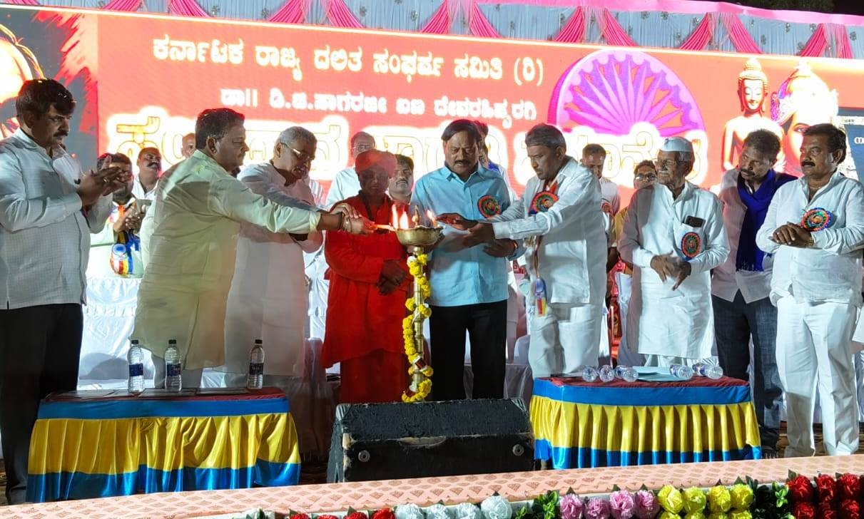 ಅಧ್ಯಕ್ಷತೆ ವಹಿಸಿದ ಕರ್ನಾಟಕ ರಾಜ್ಯ ದಲಿತ ಸಂಘರ್ಷ ಸಮಿತಿ ರಾಜ್ಯ ಸಂಚಾಲಕ ಡಿ.ಜಿ.ಸಾಗರ ಮಾತನಾಡಿ, ಅಸಮಾನತೆ ಎಂಬ ಜಿಡ್ಡು ಗಟ್ಟಿದ ವ್ಯವಸ್ಥೆಯನ್ನು ವಿರೋಧಿಸುವ ಮೂಲಕ ಬುದ್ಧ, ಬಸವ, ಅಂಬೇಡ್ಕರ್ ಮಾಡಿದ ಕಾರ್ಯವನ್ನು ನಾವು ಅರಿಯಬೇಕಾಗಿದೆ. ಸಂವಿಧಾನವನ್ನು ಸನಾತನವಾದಿಗಳು ಹಿಮ್ಮೆಟ್ಟಿಸುವ ಕಾರ್ಯಕ್ಕೆ ಮುಂದಾಗುತ್ತಿದ್ದಾರೆ ಇದನ್ನು ಅರಿತು ಜಾಗೃತಿ ಮೂಡಿಸುವ ಕಾರ್ಯ ಅತ್ಯಂತ ಶ್ಲಾಘನೀಯ ಎಂದರು.