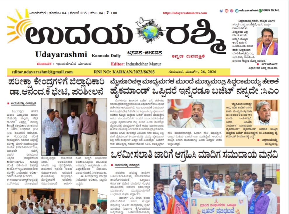 Share Facebook Twitter LinkedIn Email Telegram WhatsApp Udaya-Rashmi-26-March-2026DownloadBIJAPUR NEWS bjp public public news udaya rashmi Udayarashmi today newspaper udayarashminews.com