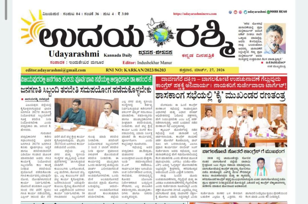 Share Facebook Twitter LinkedIn Email Telegram WhatsApp Udaya-Rashmi-27-March-2026DownloadBIJAPUR NEWS bjp public public news udaya rashmi Udayarashmi today newspaper udayarashminews.com