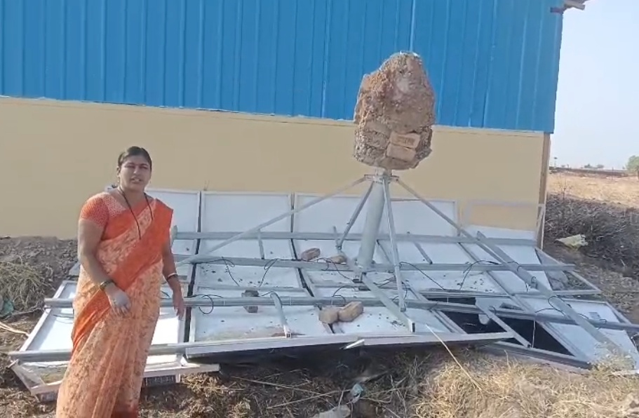 ಶನಿವಾರ ಬೀಸಿದ ಭಾರಿ ಬಿರು ಗಾಳಿಗೆ ತಾಲೂಕಿನ ನಿಂಬಾಳ ಬಿಕೆ ಗ್ರಾಮದ ರೈತ ಮಹಿಳೆ ಸುನೀತಾ ಜಗದೇವ ರಾಠೋಡ ಅವರು ಅಳವಡಿಸಿರುವ ಸೋಲಾರ ಫಲಕ ಬಿದ್ದು ದೊಡ್ಡ ಪ್ರಮಾಣದಲ್ಲಿ ಹಾನಿಯಾಗಿದೆ.