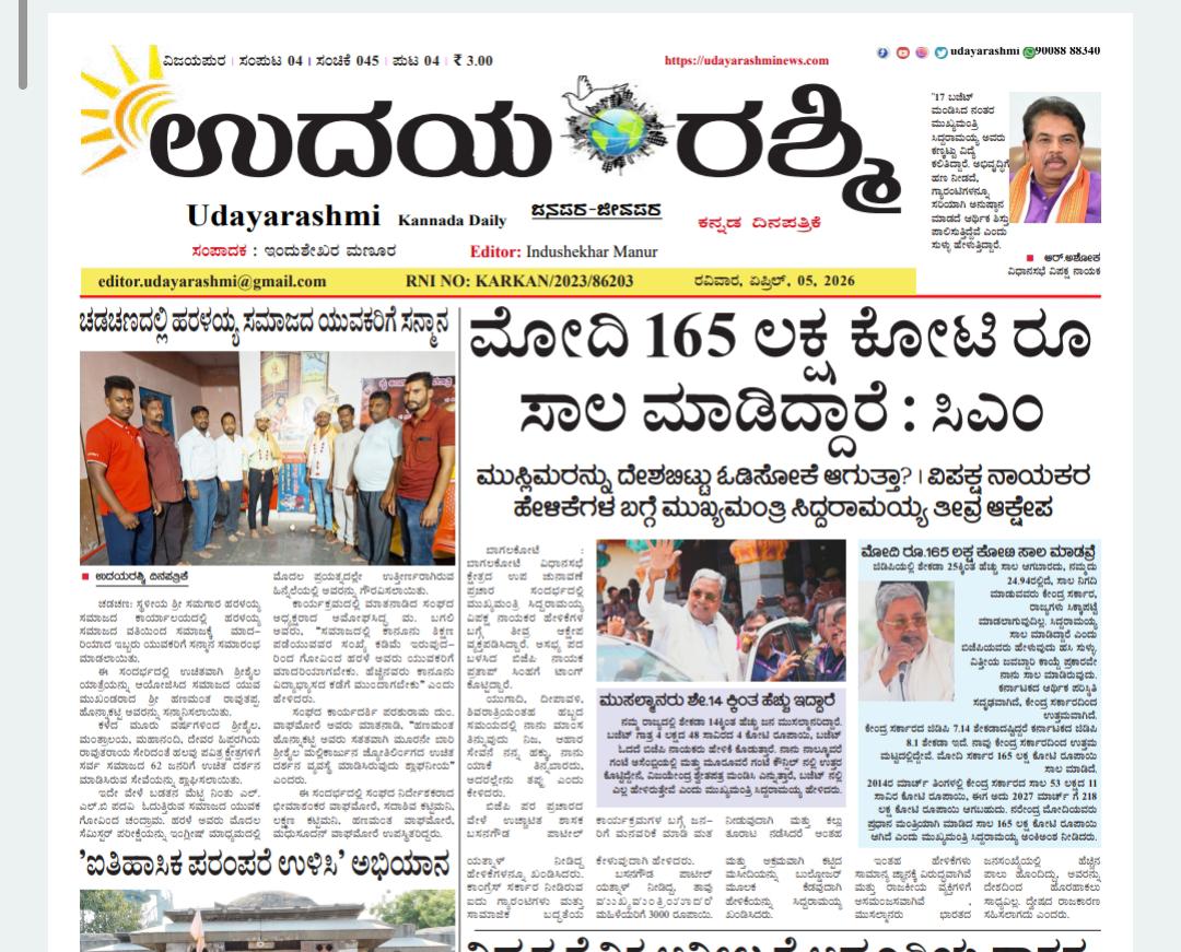 Share Facebook Twitter LinkedIn Email Telegram WhatsApp udayarashmi-05-APR-2026DownloadBIJAPUR NEWS bjp public public news udaya rashmi Udayarashmi today newspaper udayarashminews.com