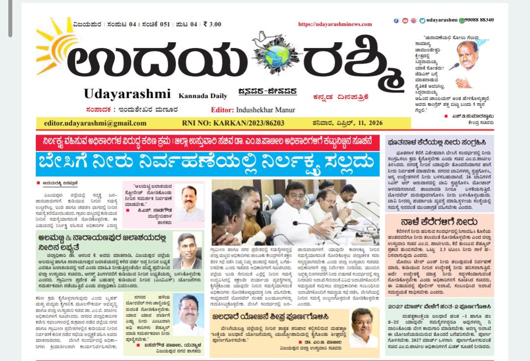 Share Facebook Twitter LinkedIn Email Telegram WhatsApp UDAYA-RASHMI-11-APRIL-2026DownloadBIJAPUR NEWS bjp public public news udaya rashmi Udayarashmi today newspaper udayarashminews.com