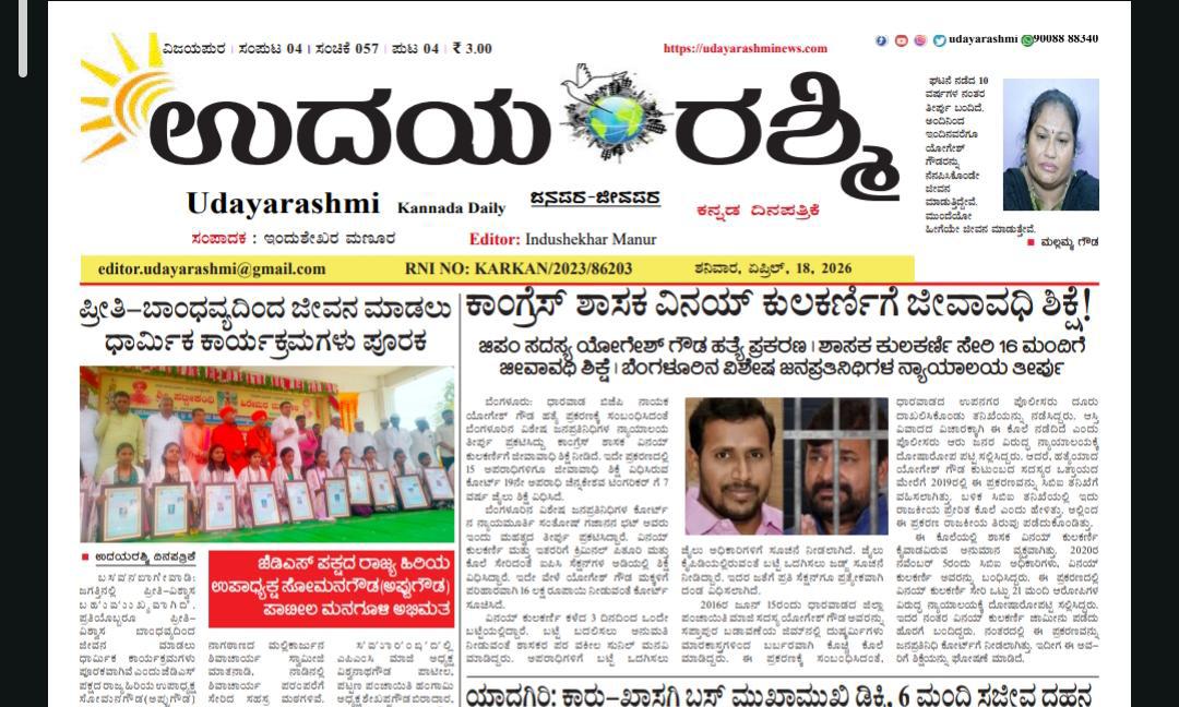 Share Facebook Twitter LinkedIn Email Telegram WhatsApp udayarashmi-18-APR-2026DownloadBIJAPUR NEWS bjp public public news udaya rashmi Udayarashmi today newspaper udayarashminews.com
