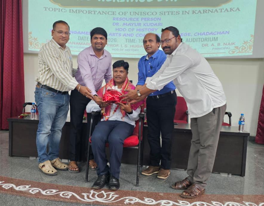 ನಗರದ ಬಿ.ಎಲ್.ಡಿ.ಇ ಸಂಸ್ಥೆಯ ಎಸ್.ಬಿ. ಕಲಾ ಮತ್ತು ಕೆ.ಸಿ.ಪಿ ವಿಜ್ಞಾನಿ ಮಹಾವಿದ್ಯಾಲಯದಲ್ಲಿ ಐಕ್ಯೂಎಸಿ, ಹೆರಿಟೇಜ್ ಕ್ಲಬ್ ಹಾಗೂ ಇತಿಹಾಸ ವಿಭಾಗದ ಸಹಯೋಗದಲ್ಲಿ ಏ.೧೮ ರಂದು ವಿಶ್ವ ಪಾರಂಪರಿಕ ದಿನಾಚರಣೆ ಅಂಗವಾಗಿ ‘ಕರ್ನಾಟಕದ ಪಾರಂಪರಿಕ ಸ್ಮಾರಕಗಳ ಮಹತ್ವ’ ಎಂಬ ವಿಷಯದ ಕುರಿತು ಸಂಪನ್ಮೂಲ ವ್ಯಕ್ತಿಯಾಗಿ ಮಾತನಾಡಿದ ಅವರು, ಪುರಾತತ್ವ ಇಲಾಖೆಯಡಿಯಲ್ಲಿನ ಹಲವಾರು ವಿಶ್ವ ಪಾರಂಪರಿಕ ತಾಣಗಳು ಇದ್ದು ಅವುಗಳನ್ನು ಸಂರಕ್ಷಿಸುವ ಜವಾಬ್ದಾರಿ ನಮ್ಮದಾಗಿದೆ, ಪಾರಂಪರಿಕ ತಾಣಗಳು ಪೂರ್ವಜರ ವಿಚಾರಗಳನ್ನು ಪಸ್ತುತಪಡಿಸುತ್ತಿವೆ ಎಂದರು.